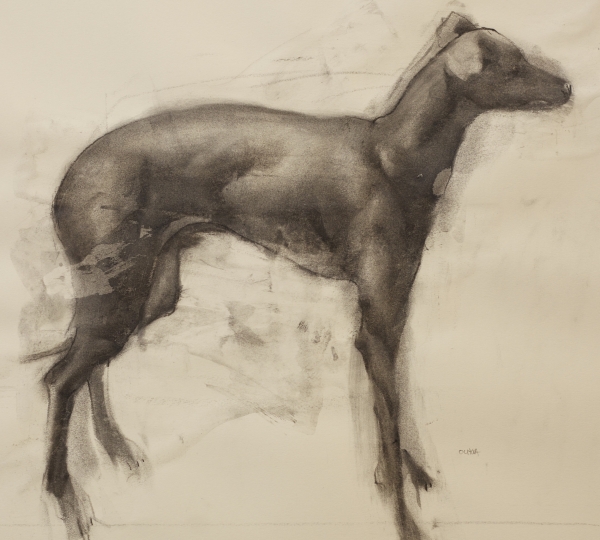 Dog Study 2, 12x10in, charcoal on paper, 2017