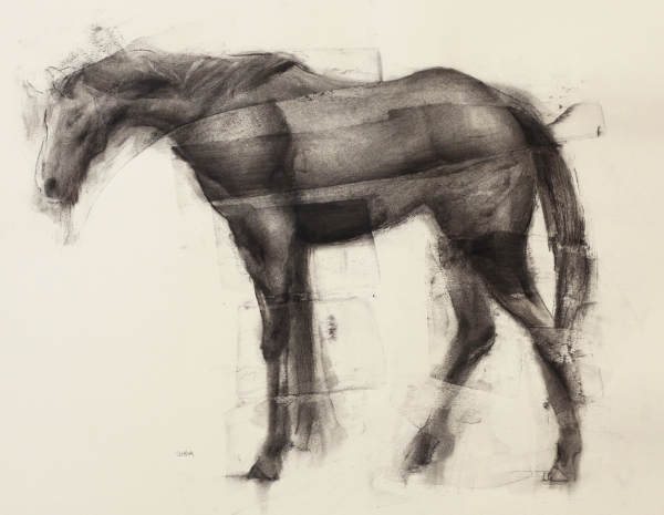 Horse 3-23-17, 10x13in, charcoal on paper and transparent gesso, 2017