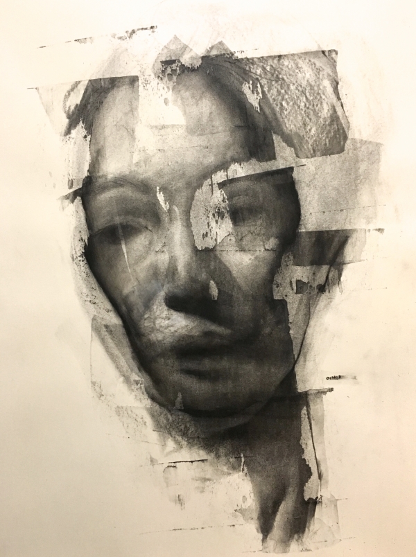 Portrait 1-29, 14x11in, charcoal on paper and transparent gesso, 2017