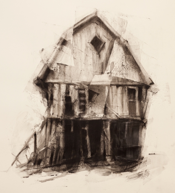 Structure 4-15-17, 12x9in, charcoal on paper and transparent gesso, 2017