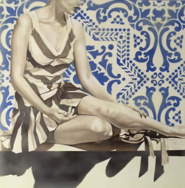 Striped Dress, 24x24in, oil/ encaustic wax, 2015