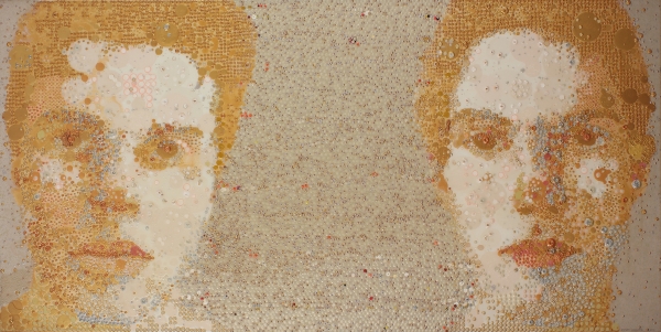 Space, 36x72in, Acrylic, googly eyes, eyelets on canvas, 2014