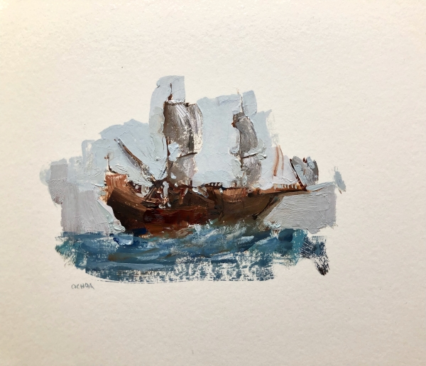 Ship Study 2-8-23, 6x8in, oil on paper, 2023