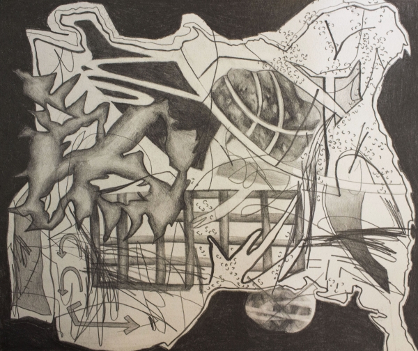 Lurking Bumpkins, 10x12in, graphite on paper, 2017