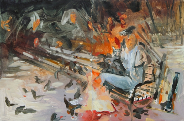 The connection, 16x24in, oil on board (diptych), 2017
